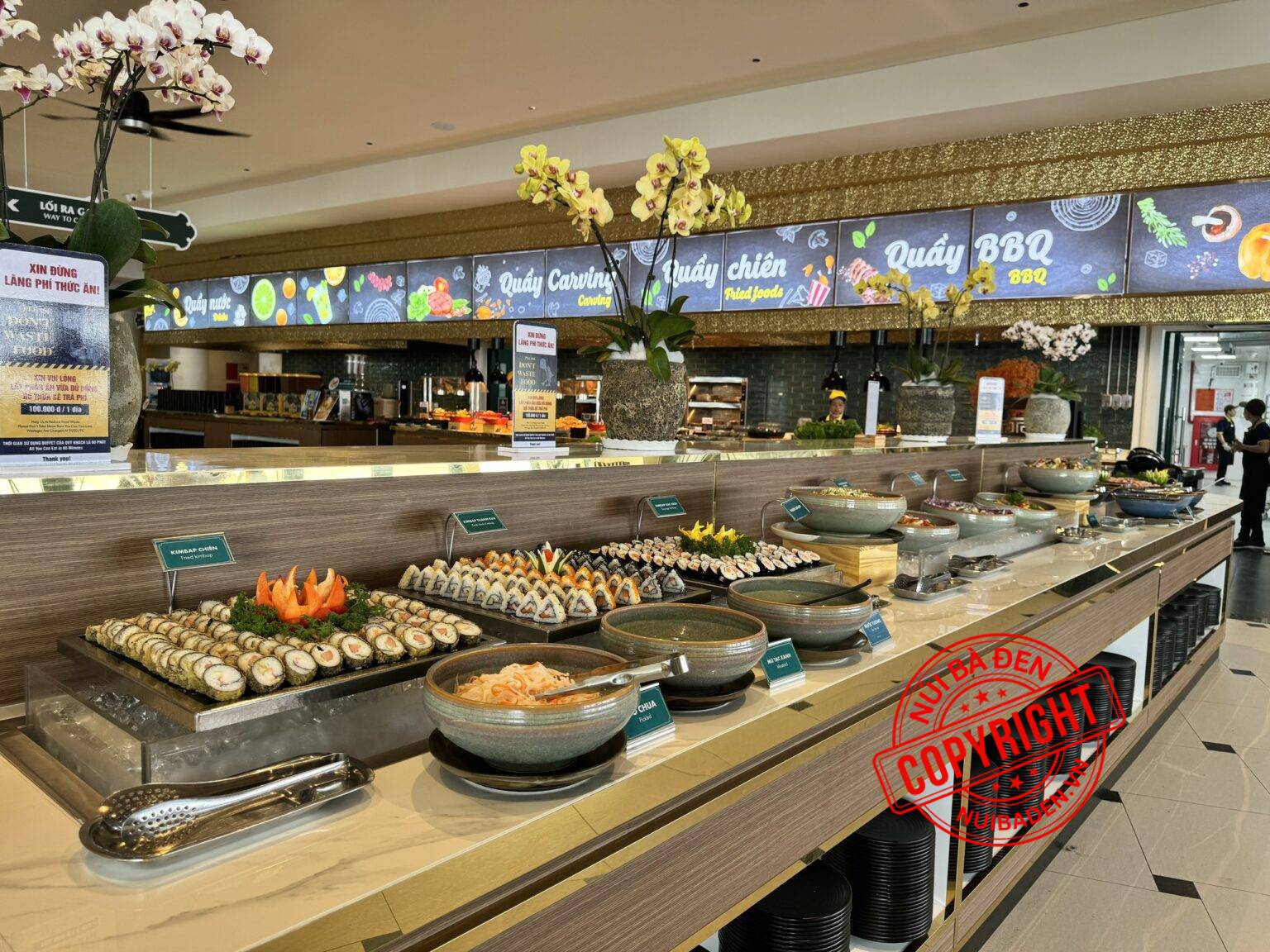 ✔ Quý khách có thể dung bữa trưa buffet Năm Châu trên đỉnh Núi Bà Đen - Thực đơn gồm hơn 80 món ăn của nhà hàng mang đến trải nghiệm ẩm thực độc đáo, kết nối tinh tế qua những hương vị Việt Nam và châu Á.